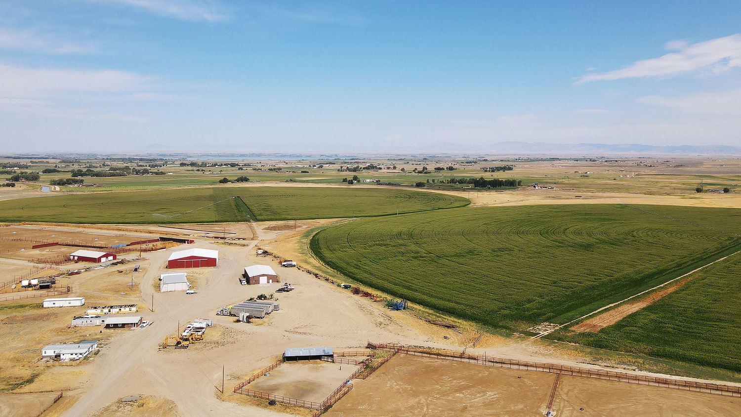 The irrigated lands are primarily pivot irrigated with 5 pivot systems.  The deeded lands are located in two units, the Headquarters (Herman Place) consist of 1,413 acres with three newer Zimmatic pivots and the two Valley Farm consists of 233.7 acres with two Valley pivots with one being a wiper. Two additional pivots on 190 acres are leased to round out annual feed production needs for feeding 3,500 cattle. The alfalfa stands are mostly newer top-quality plantings.